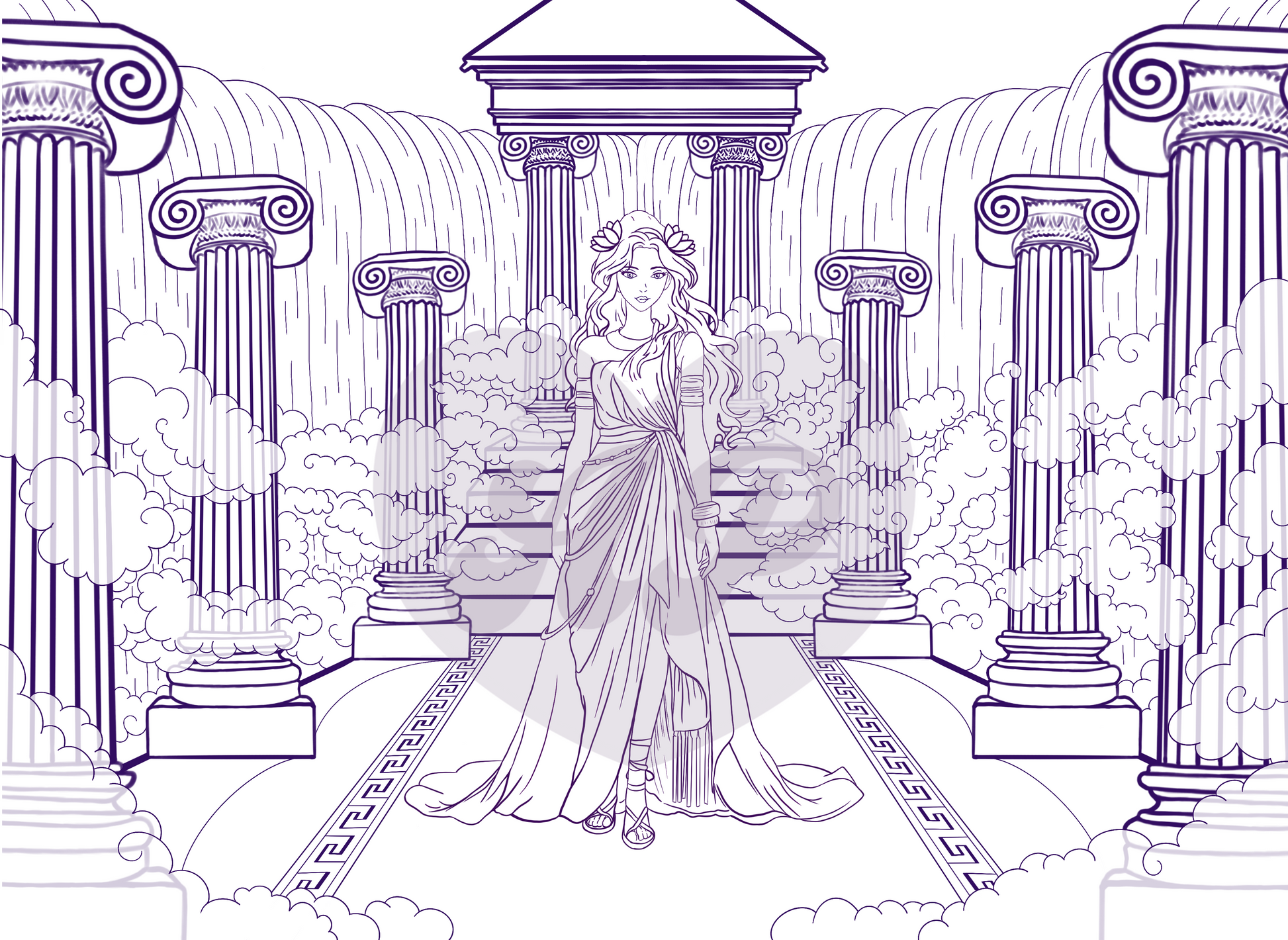 Immerse yourself in the captivating world of Greek mythology with this dreamy coloring page. Featuring a stunning misty waterfall, grand Ionic columns, and a powerfully mysterious woman, this digital download will transport you to a magical land filled with mist and wonder. Let your creativity flow and bring this scene to life with your choice of colors 💜