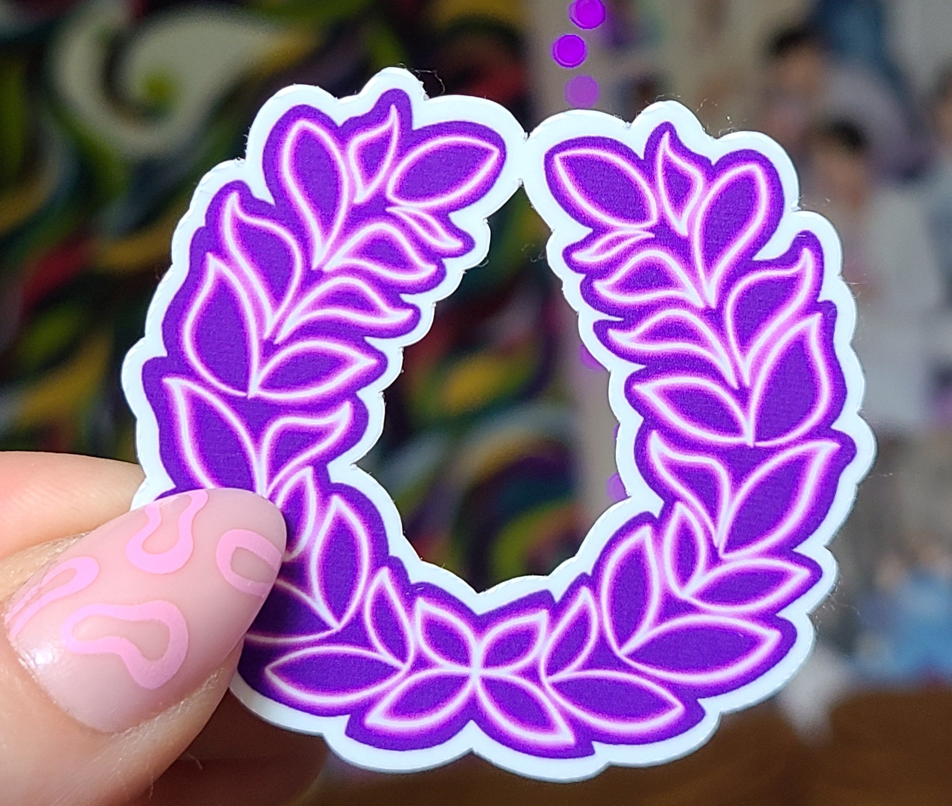 Celebrate your victories with our Laurel Vinyl Sticker. Featuring a modern twist on the ancient Greek symbol of triumph, this neon pink and purple sticker is a colorful reminder to embrace your accomplishments. Perfect for adding a pop of color to your emotional support water bottle, laptop, or any other surface.💜🇬🇷